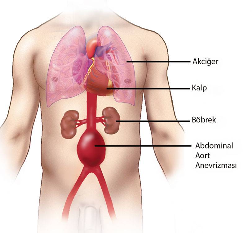 Abdominal aort anevrizması sıklıkla böbrek damarı çıktıktan hemen sonra başlar ve ana bacak damarlarına kadar uzar.
