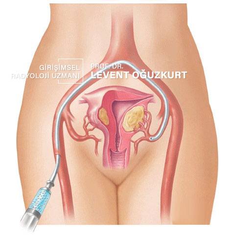 Miyom (aynı zamanda fibroid ya da leiomiyom diye de adlandırılır) kadınlarda rahim kaslarından gelişen iyi huylu bir tümördür. Kanser (kötü huylu tümör) değildir. Bazı kadınlarda ciddi şikayet oluşturur ve tedavi gerektirir. Genel bilgiler miyom tedavisi sayfasında anlatılmıştır. Miyomum embolizasyon dışındaki tüm tedavilerini kadın doğum uzmanları yapar. Miyom embolizasyonunu bizler yani Girişimsel Radyoloji uzmanı yapar.