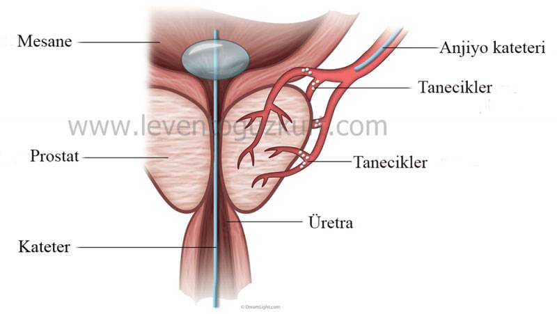 - Anjiyo ile prostat tedavisinde, prostat bezini besleyen damarlar tıkanır (embolizasyon).