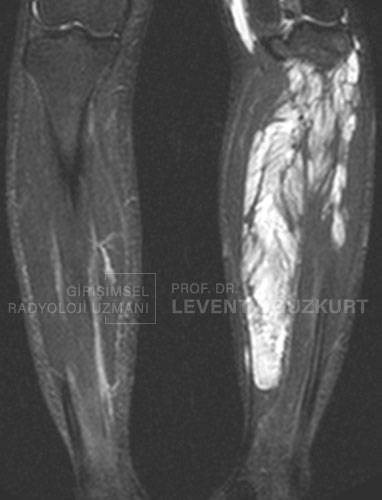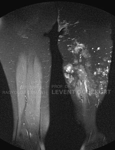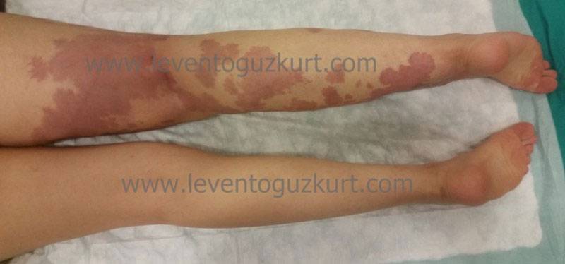 Uyluk bölgesind ebeyaz renkle görünen kısım damar anormalliğini gösteriyor.
